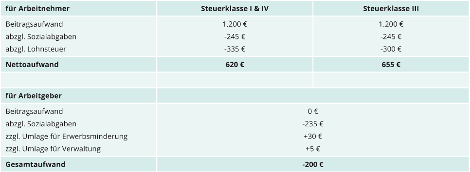 Variante 2 Mit Beitragsbeteiligung durch Arbeitgeber